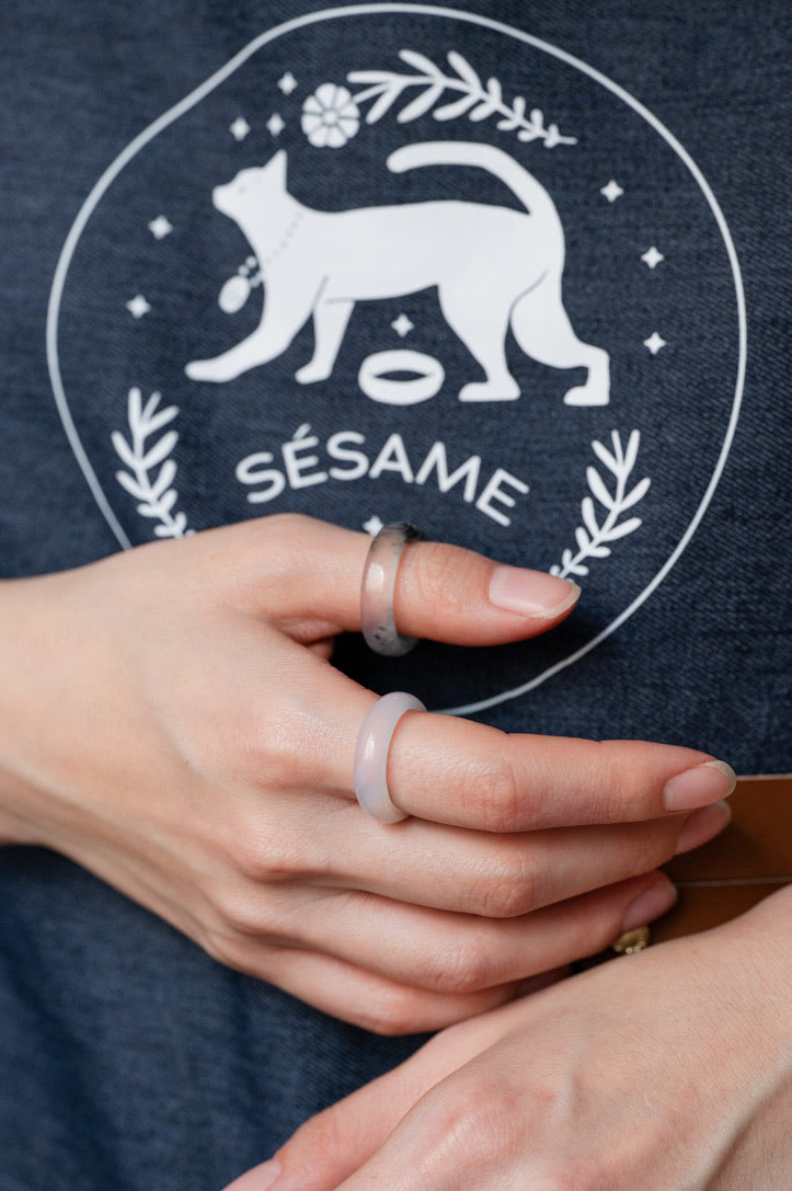 Choisissez la teinte, la forme et le type de bijou qui vous inspirent, bague, pendentif ou jonc, en nuances vert tendre, ambrées, marbrées ou façon encre de Chine.