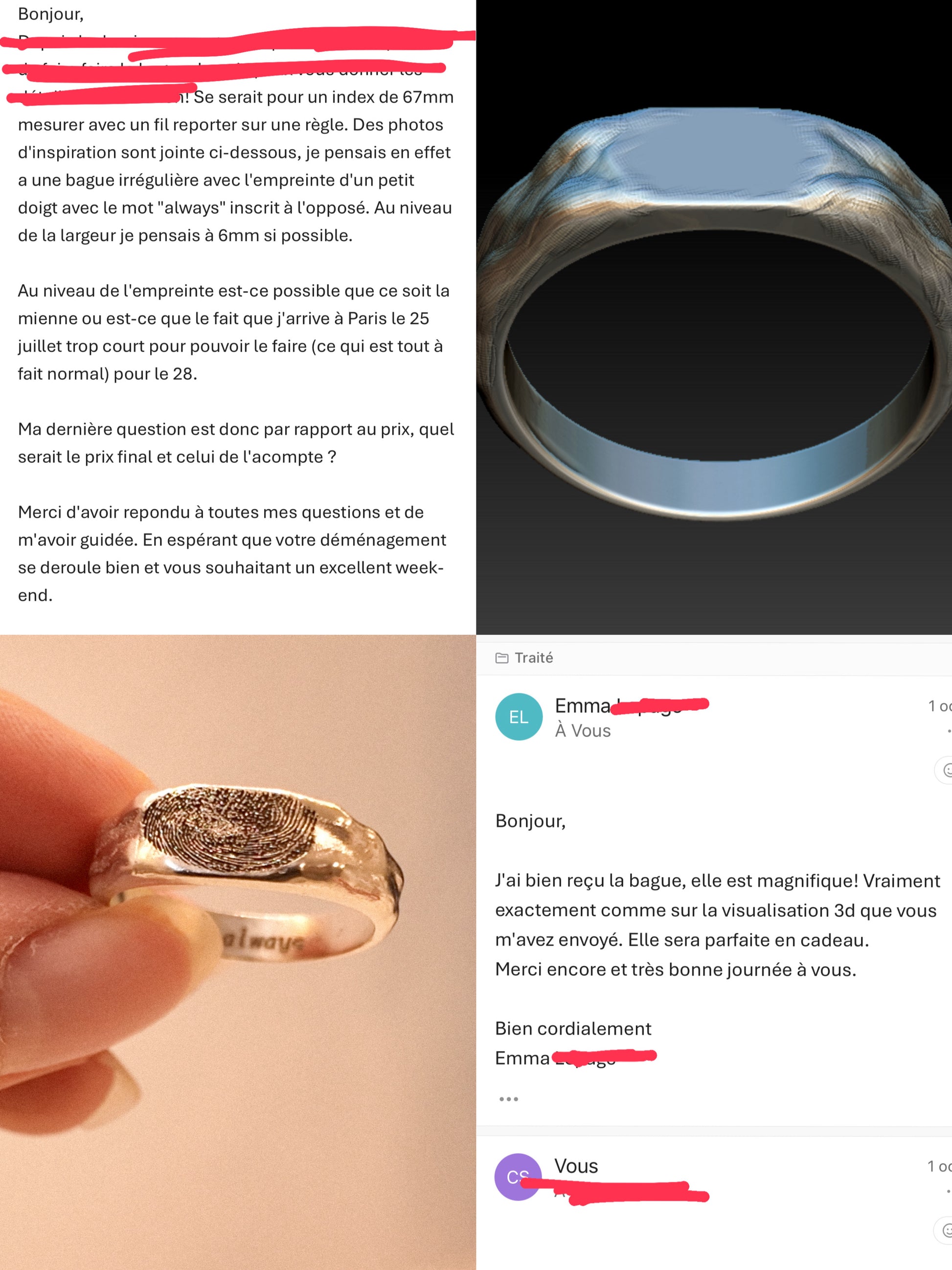 Vous avez une idée précise, un dessin ou un bijou rêvé en tête ? Confiez-nous votre projet : nous le transformerons en une pièce unique, conçue sur-mesure selon vos envies.
